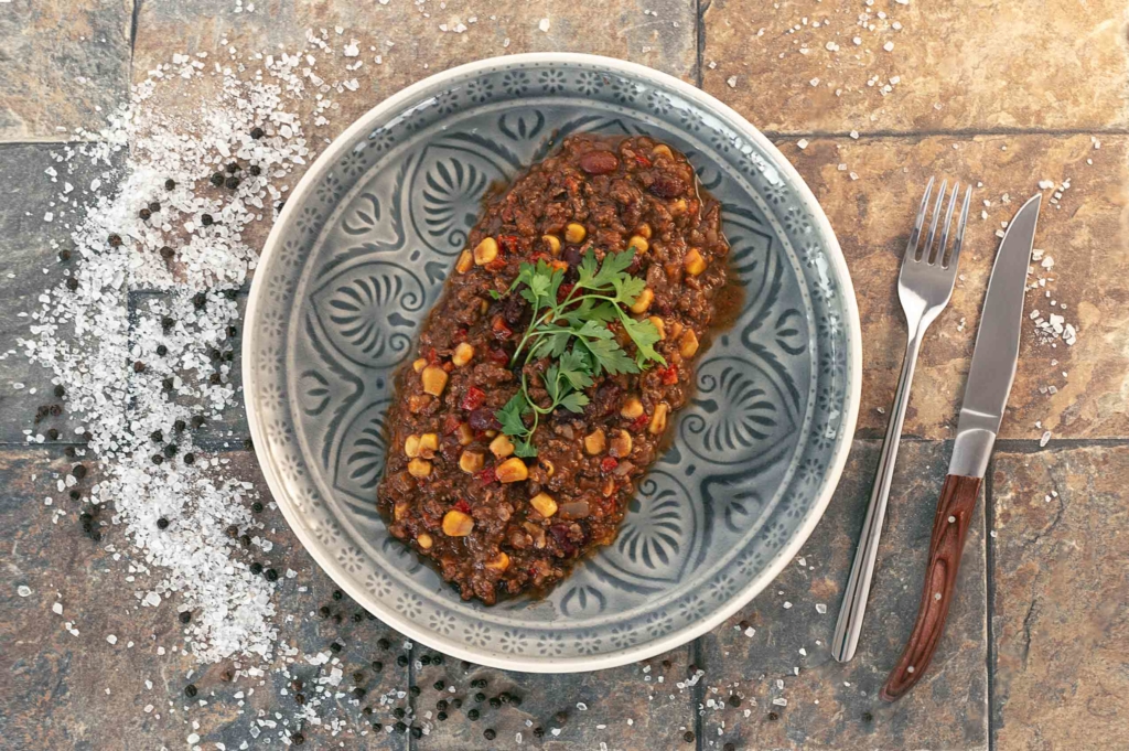 Der Klassiker unter den Hackfleischgerichten. Rinderhack in einer Sauce aus Bohnen, Mais und einer Chili-tomaten-Würzmischung stillen deinen Hunger und sorgen für einen guten Geschmack