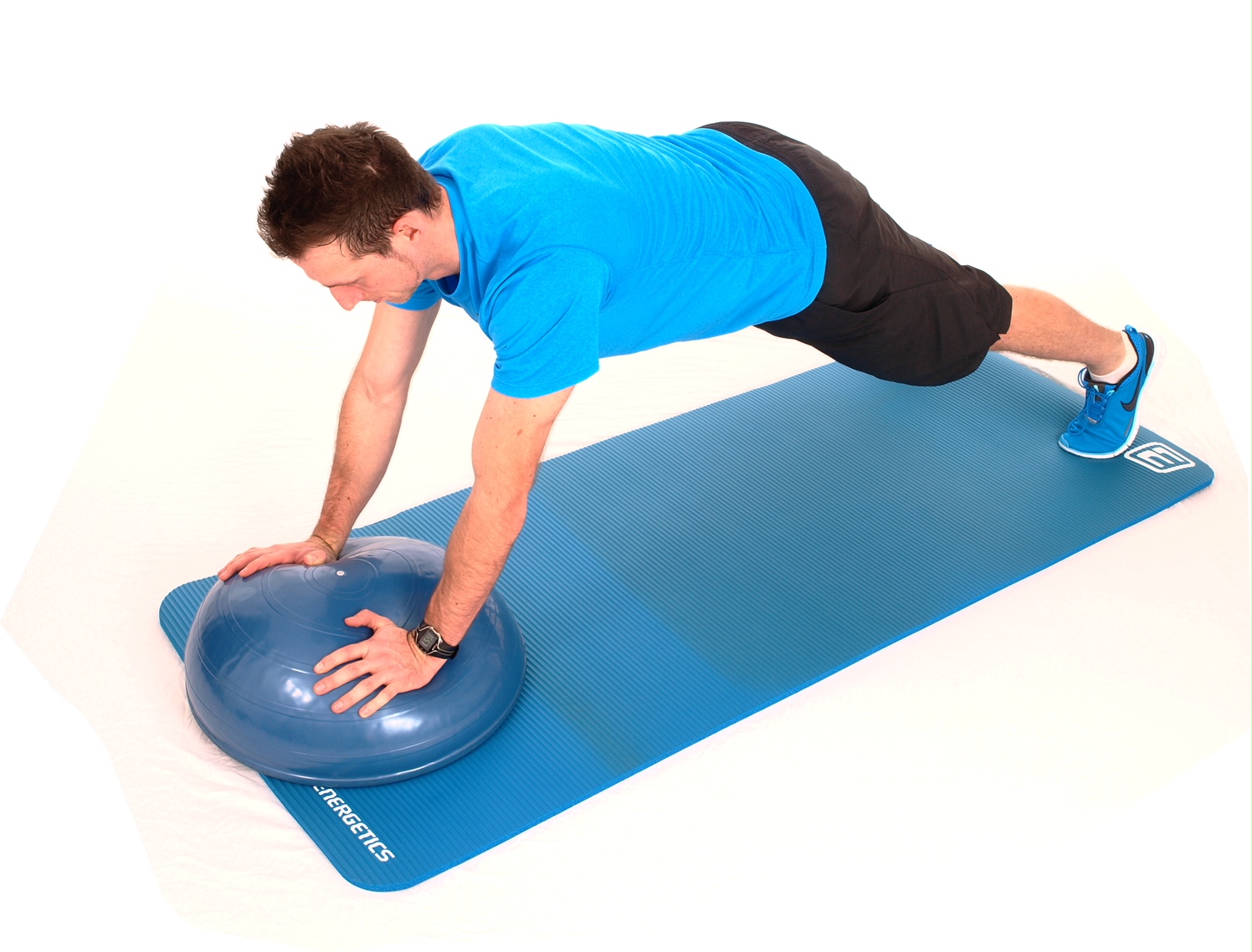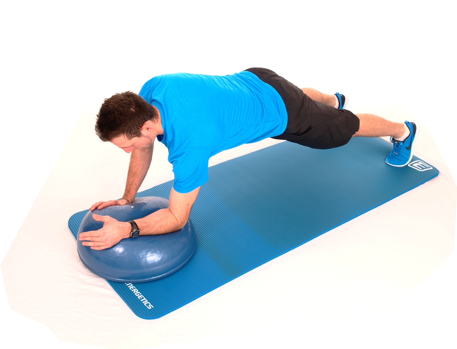 - Zuerst mit einem Arm nach oben drücken, dann mit dem anderen Arm bis in die Liegestützposition