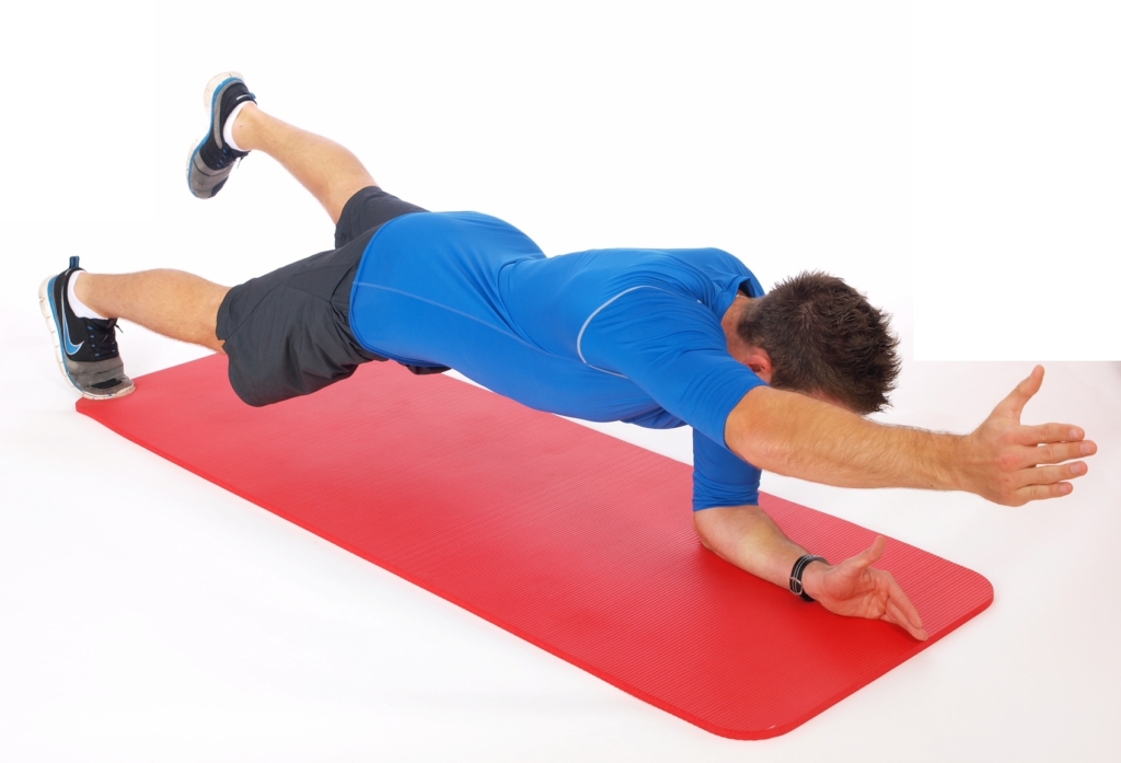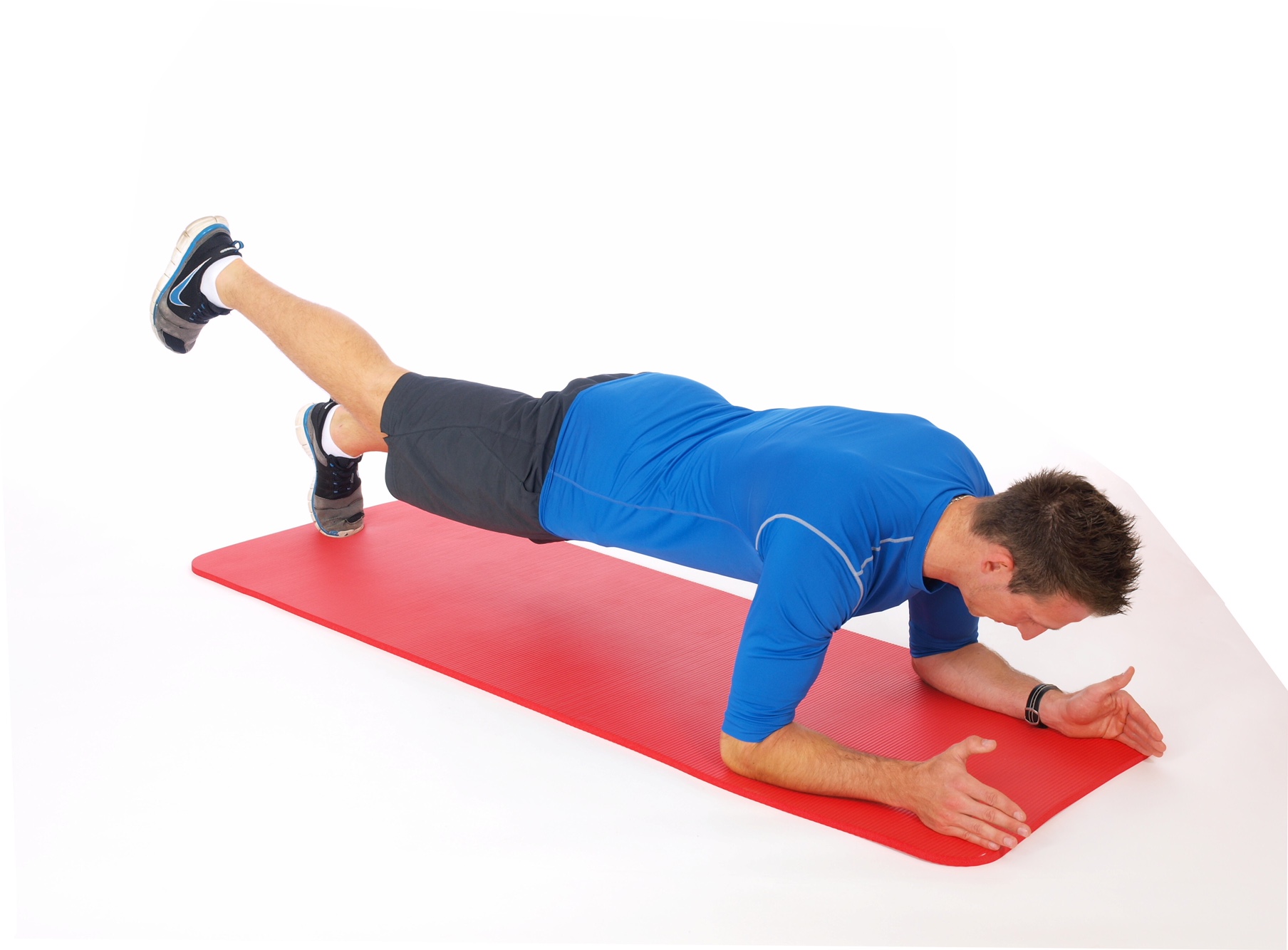 • Schwere Varianten: Ein Bein anheben, ein Bein und entgegengesetzten Arm anheben.
