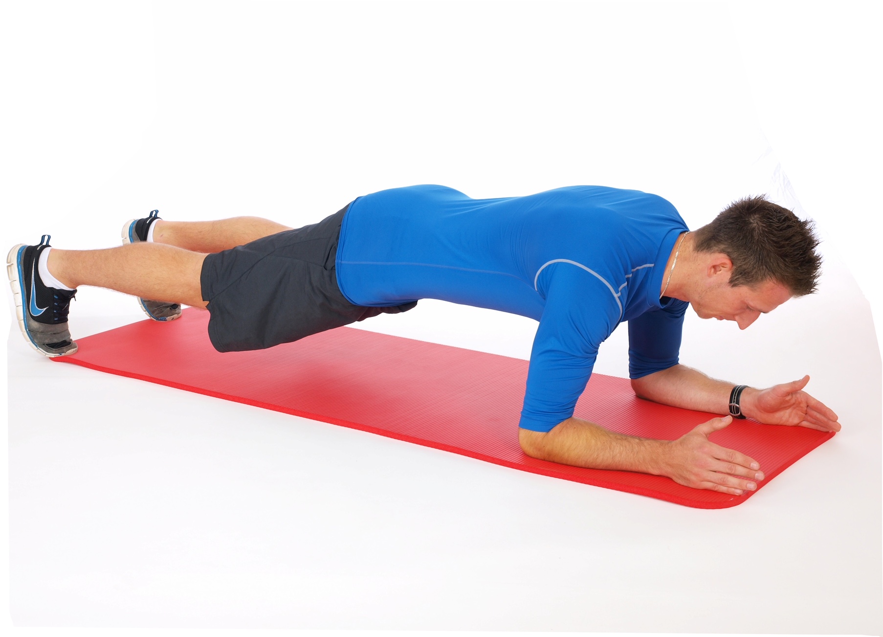 • Auf den Unterarmen und Zehenspitzen abstützen.
