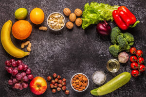 Gesundes Essen mit Nährwerttabelle, frisch zur jederzeit und überall.