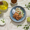 Mit diesem Gericht bringen wir dir einen Hauch vom Orient zu dir nach Hause. Unser leckeres, mit verschiedenen Gemüsen und Gewürzen zubereitetes Hähnchenfleisch, kombiniert mit unserem Cous Cous Salat. Passend dazu unser leckerer Dip.