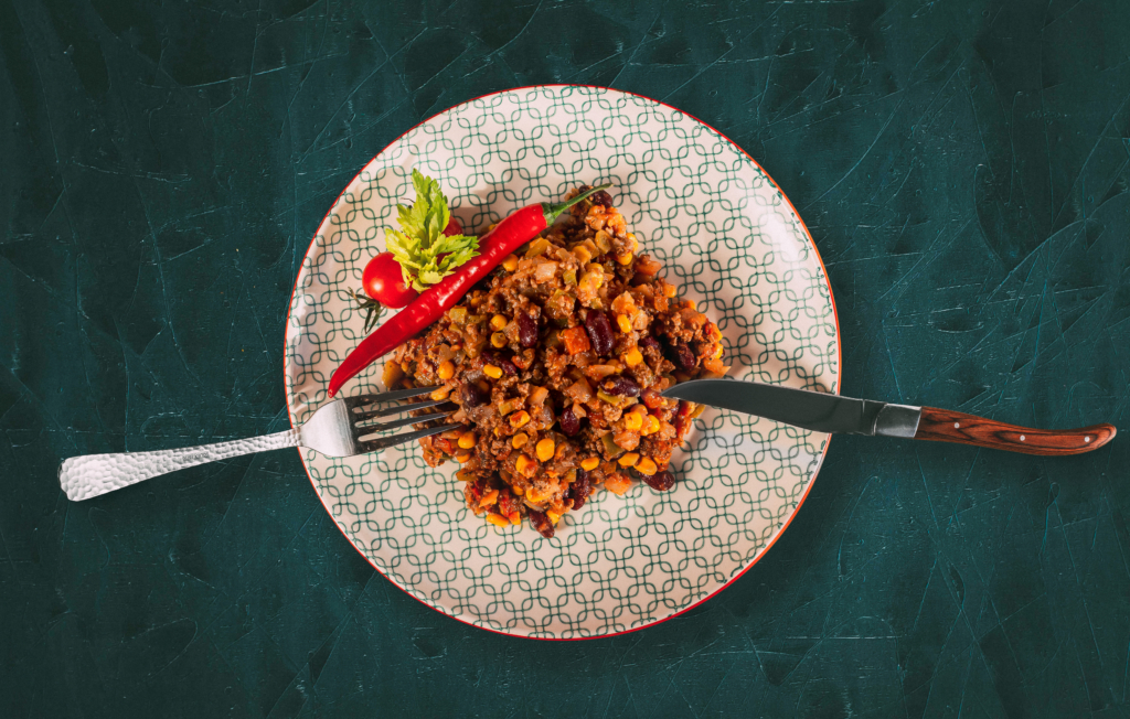 Der Klassiker unter den Hackfleischgerichten. Rinderhack in einer Sauce aus Bohnen, Mais und einer Chili-Tomaten-Würzmischung stillen deinen Hunger und sorgen für einen guten Geschmack. Das Gericht zeichnet sich dank des Fleisches und der Bohnen durch einen hohen Proteingehalt aus. Die Chilis regen zusätzlich deinen Stoffwechsel an.