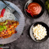 Würziger Eintopf aus Tomaten, Bohnen und Mais. Verfeinert mit zahlreichen Gewürzen. Dazu hast du mit dem Reis jetzt auch noch einen perfekten Kohlenhydratlieferanten und Sattmacher.