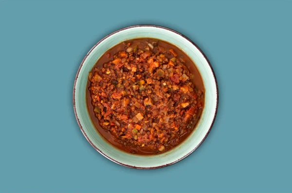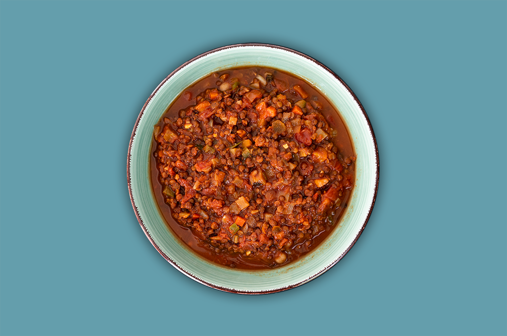 Trinkwasser, 30% Tomaten, 8% Beluga Linsen, Zwiebeln, Paprikaschote,
