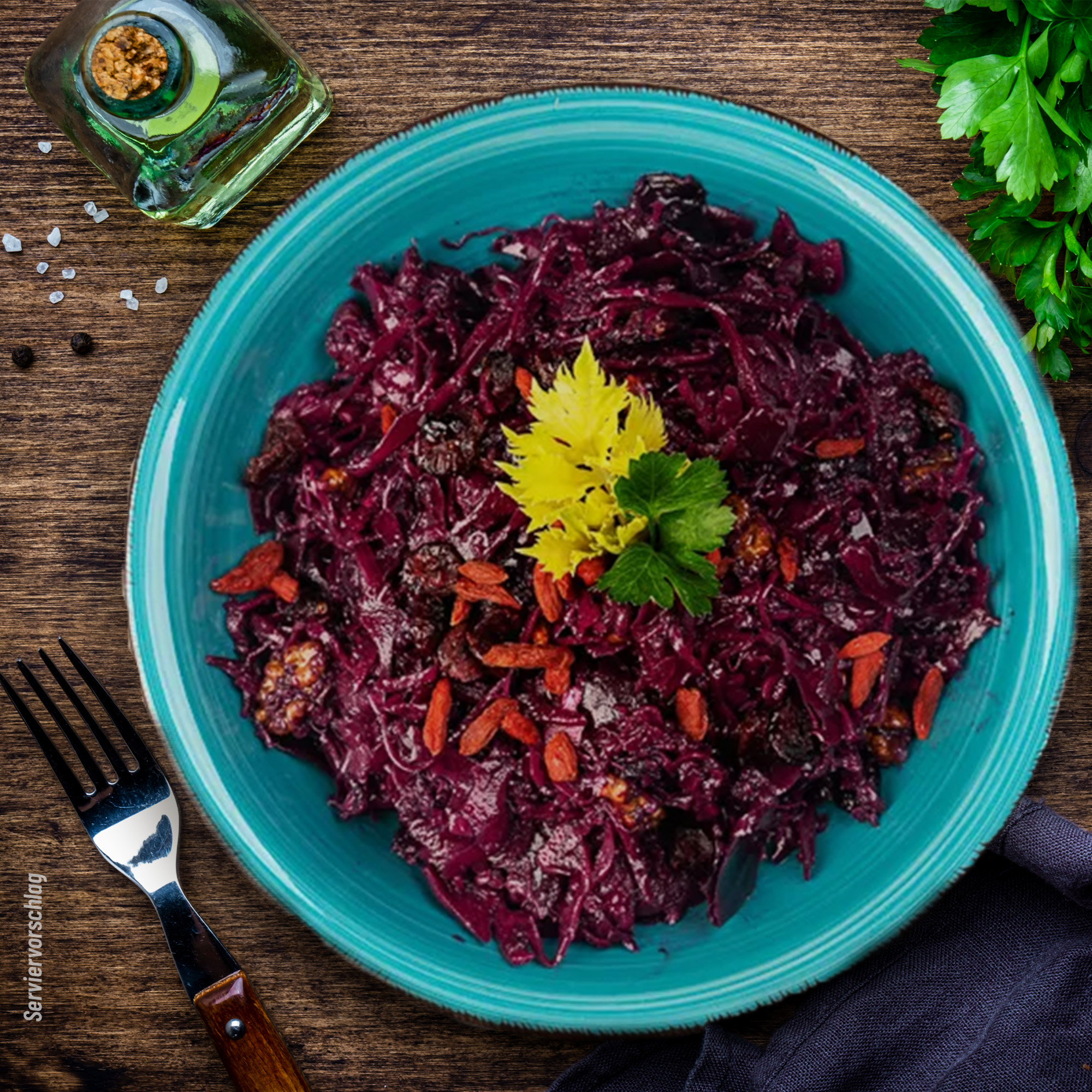 Rotkohlsalat mit rote Beete, Quinoa und Walnüssen
