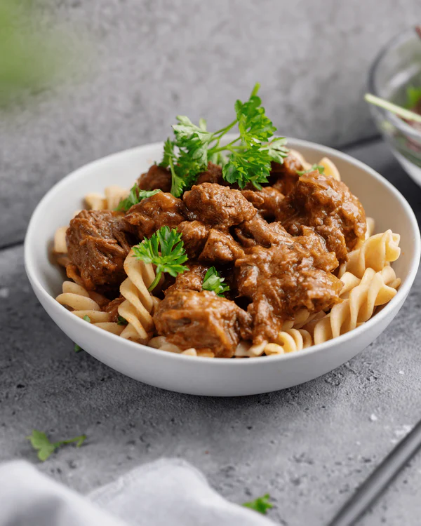 Unser leckeres Rindergulasch mit Vollkornspirelli