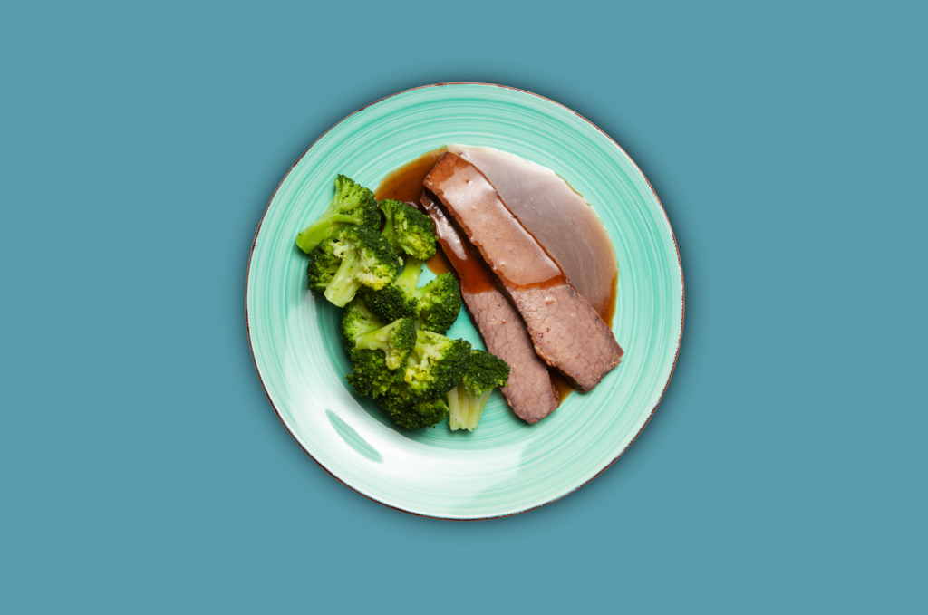 Ochsenbrust mit Brokkoli und Bratensoße, reduzierter Kohlenhydratanteil